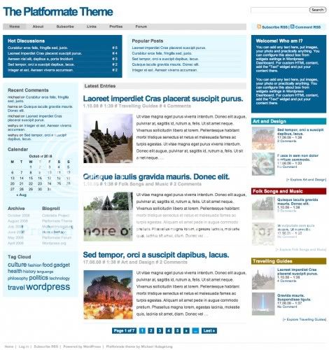 Platformate is a unique magazine-style wordpress theme that keeps your blog personal. It has a touch of magazine block elements showing hot discussion and most popular posts in the front page while having other posts remain as usual blog date-ordered lists, along with automatically generated fancy thumbnails that are displayed at a pretty sidebar to show your latest posts. With Platformate, your blog is total make-over!